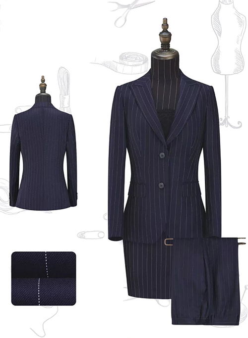 面料:藏蓝条纹毛涤